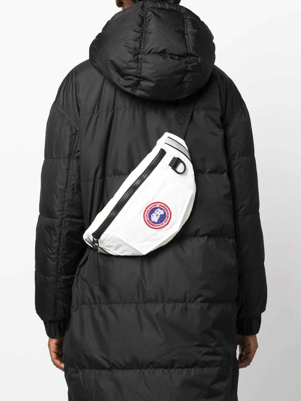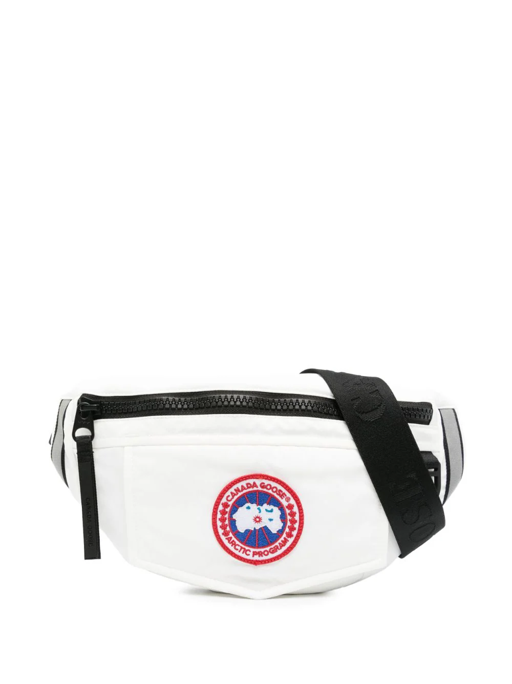 The Canada Goose Men Logo Patch Belt Bag in white is a compact and practical piece with top zip and front logo patch. This has an adjustable waist strap, rear zip pocket and internal slip pocket — a neat travel essential that tucks into luggag.