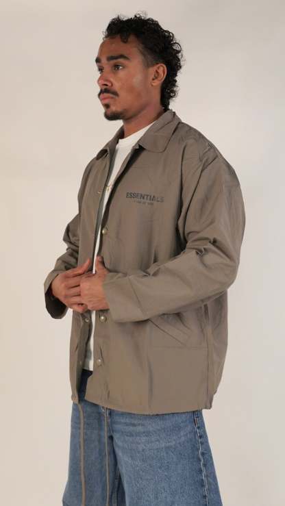 De Fear of God Essentials FW20 Coach Jacket Taupe is verkrijgbaar bij SneakerAsk en vormt de perfecte toevoeging aan jouw streetwear look. Deze jas combineert minimalistisch design met hoogwaardige materialen, waardoor stijl en comfort hand in hand gaan. Met een Fear of God Essentials jas ben je altijd verzekerd van een premium uitstraling. Uiteraard is elk item 100% authentiek en van topkwaliteit.