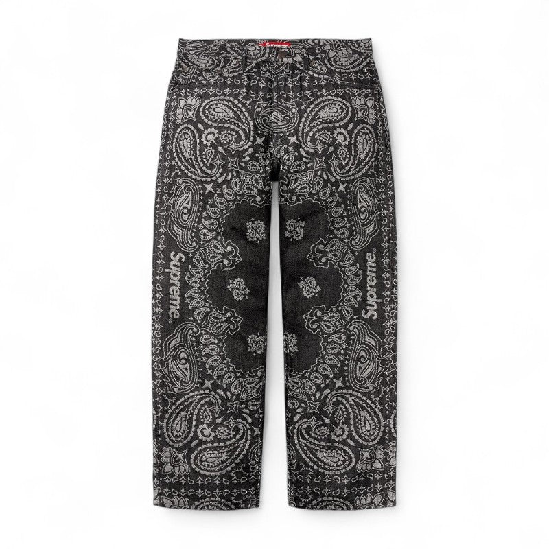 Supreme Bandana Jacquard Baggy Jeans – Black (SS25P12)