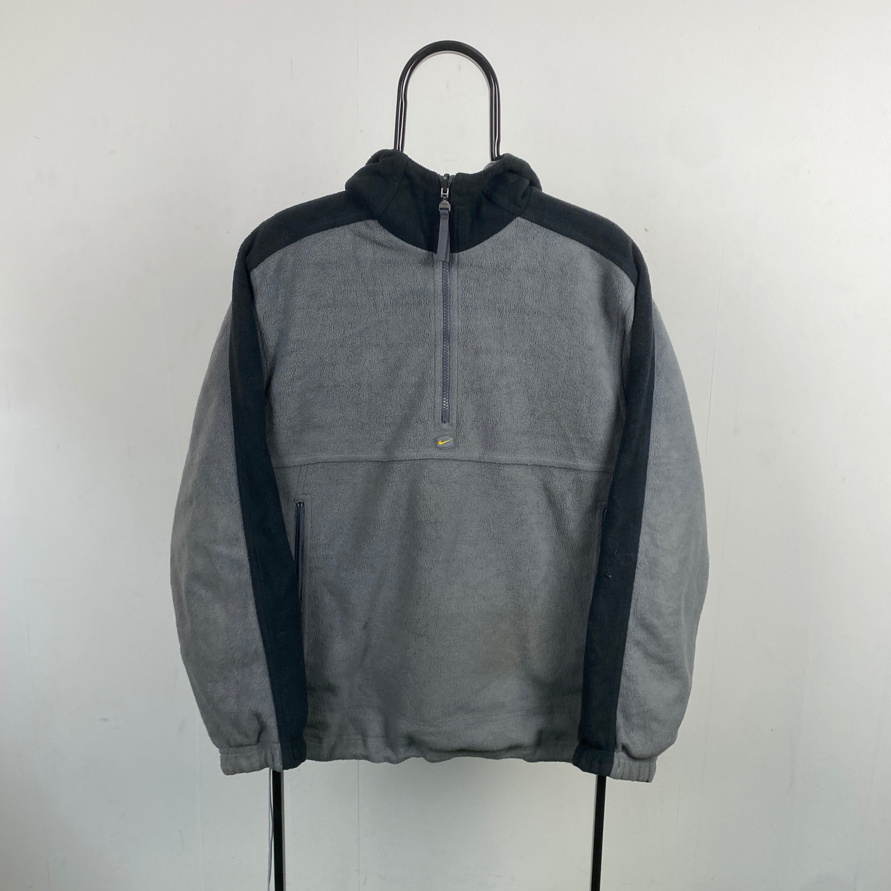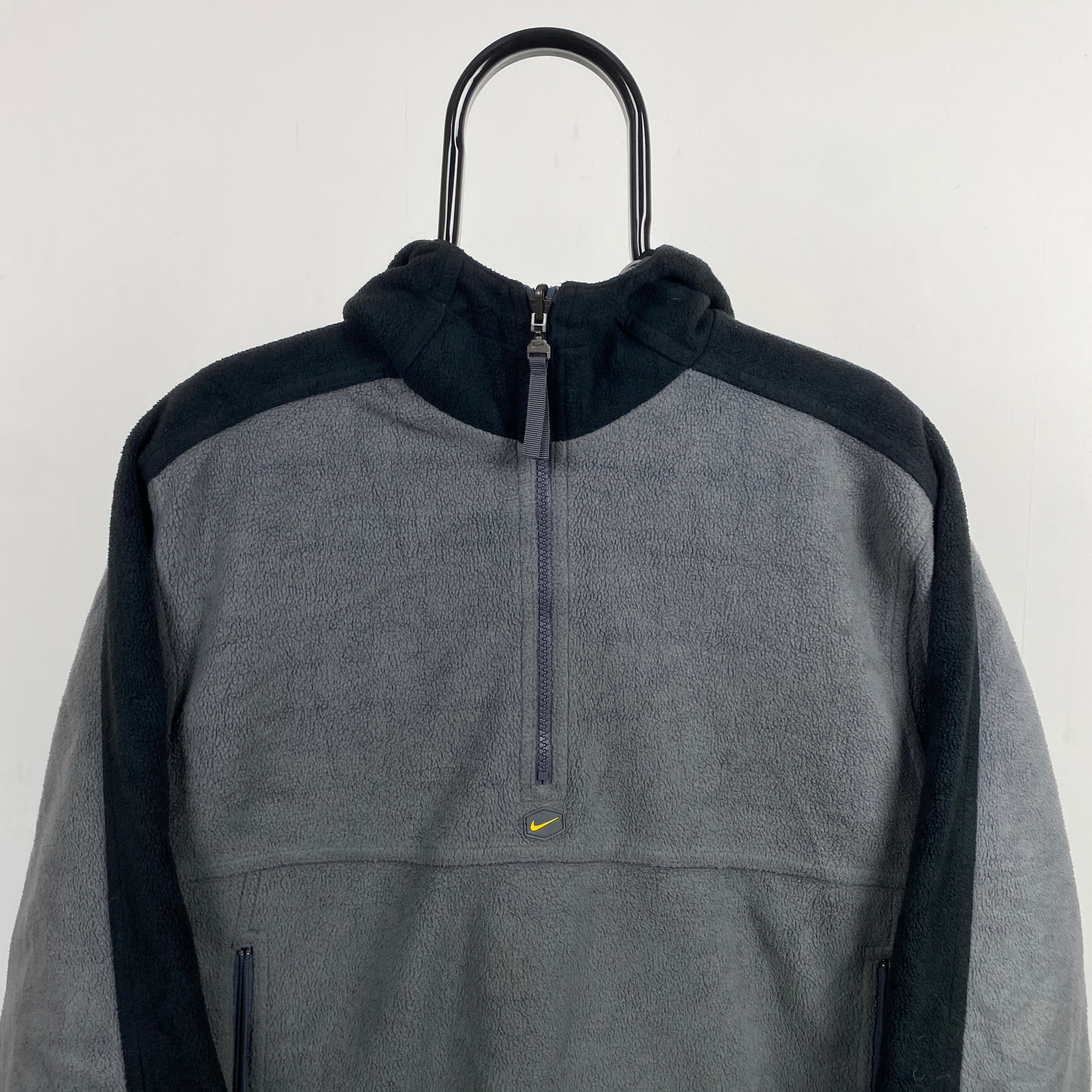 Switch your look in seconds. One side features soft fleece for warmth and comfort, while the other sports a smooth nylon shell for that retro techwear feel.